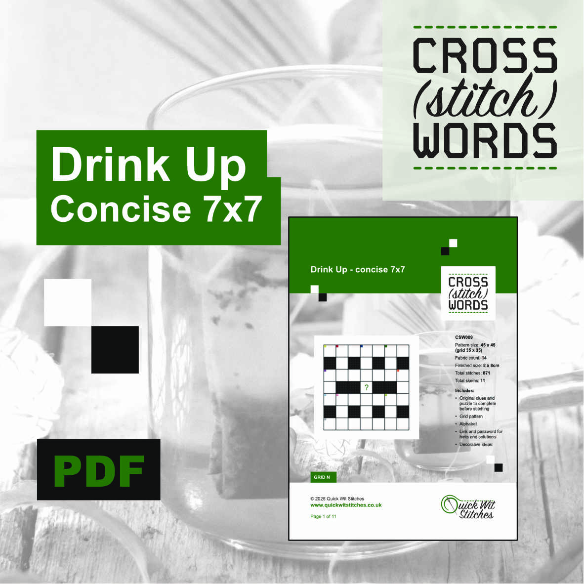 This crossword uses grid ref N. If you have previously purchased a cross(stitch)word pattern using this reference, you may prefer to purchase the clue set without the grid stitch pattern.