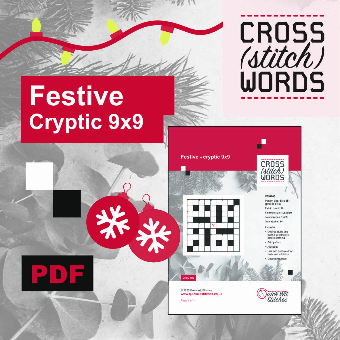 Celebrate the festive period with this 9×9 cryptic, complete with seasonal decorative ideas. Perfect for gifting.